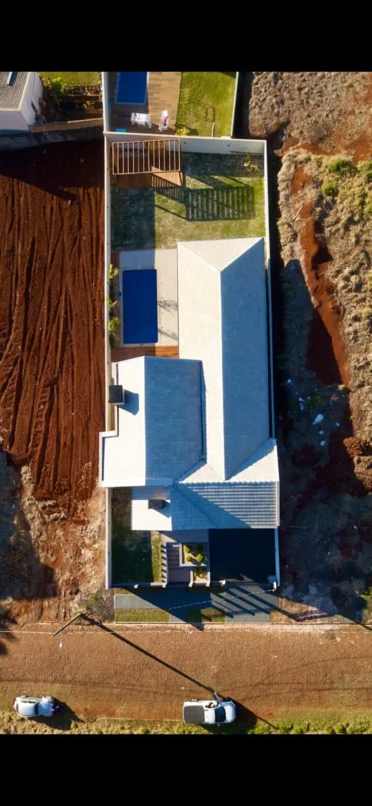 - Piscina em concreto, c/ revestimento em VINIL, com bordas em Mármore Flameado