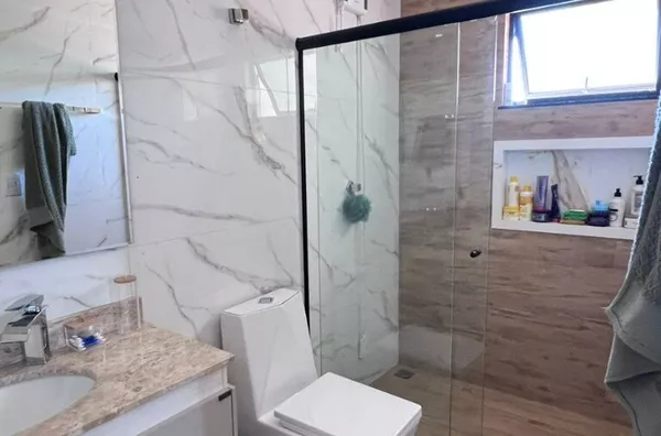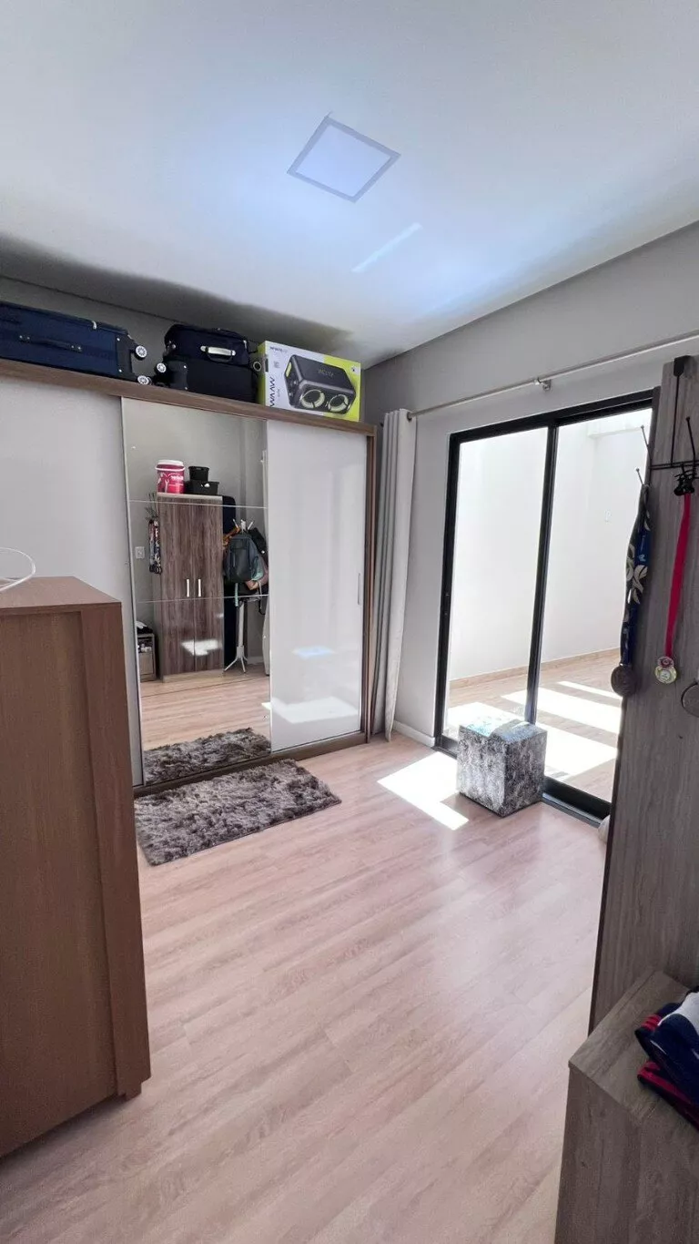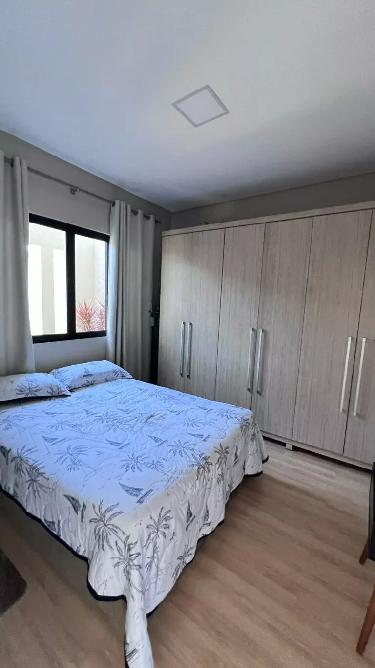 Composto por: Uma suíte com closet, dois quartos, duas sacadas, um escritório, cozinha, sala de jantar, sala de estar, área de serviços, banheiro social, lavabo, garagem para dois carros, área de lazer. Acabamentos em porcelanato, laminado, todo rebaixado em gesso, entradas para ar-condicionado, agua quente, câmeras de monitoramento.